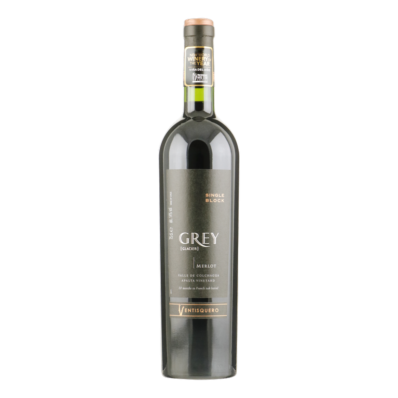 De Ventisquero Grey merlot betovert met zijn diepe robijnrode kleur, verrijkt met violette tinten. De neus is rijk en intens, met dominante aroma's van rood fruit zoals aardbeien, aangevuld met hints van rijpe pruimen en een vleugje eiken. Chocoladetonen voegen een extra laag van complexiteit toe. In de mond is deze Merlot vol en krachtig, met zijdezachte tannines die zorgen voor een volle, aanhoudende afdronk. Een ware traktatie voor elke wijnliefhebber!